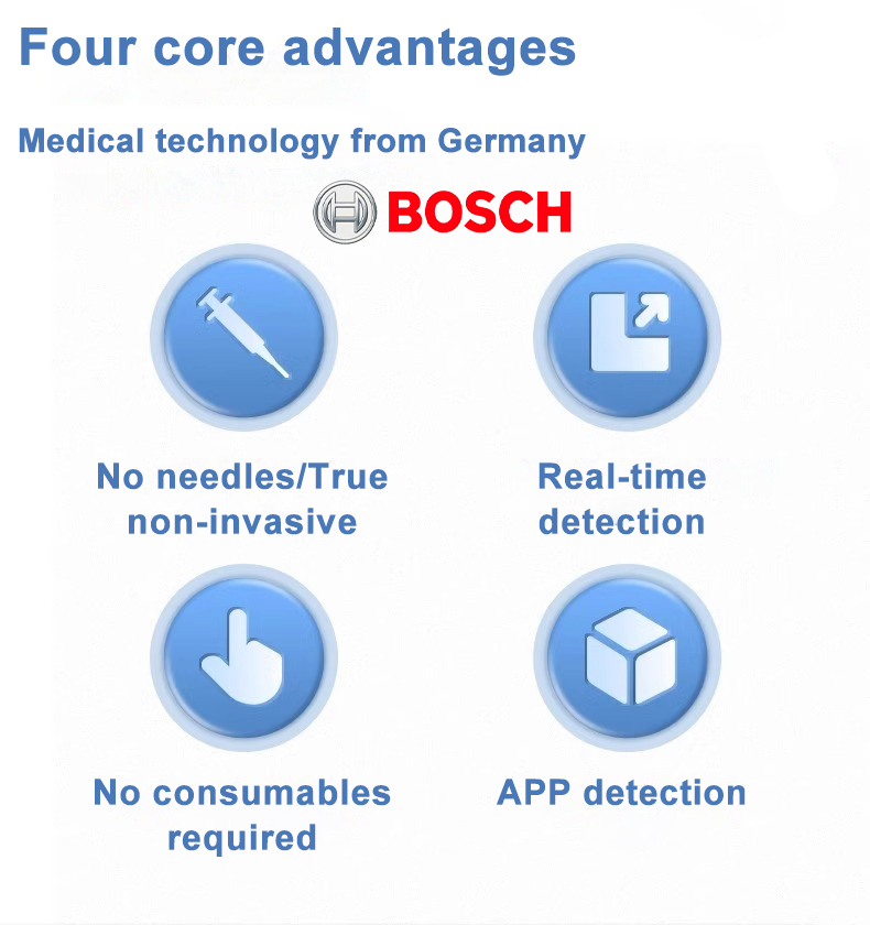 Prvý neinvazívny multifunkčný glukomer od spoločnosti BOSCH je vhodný nielen na meranie hladiny cukru v krvi, krvného tlaku, kyseliny močovej, obehového systému, srdca a pľúc, obličiek, prostaty, srdcovej frekvencie a telesnej teploty, ale má aj originálnu funkciu laserovej liečby.